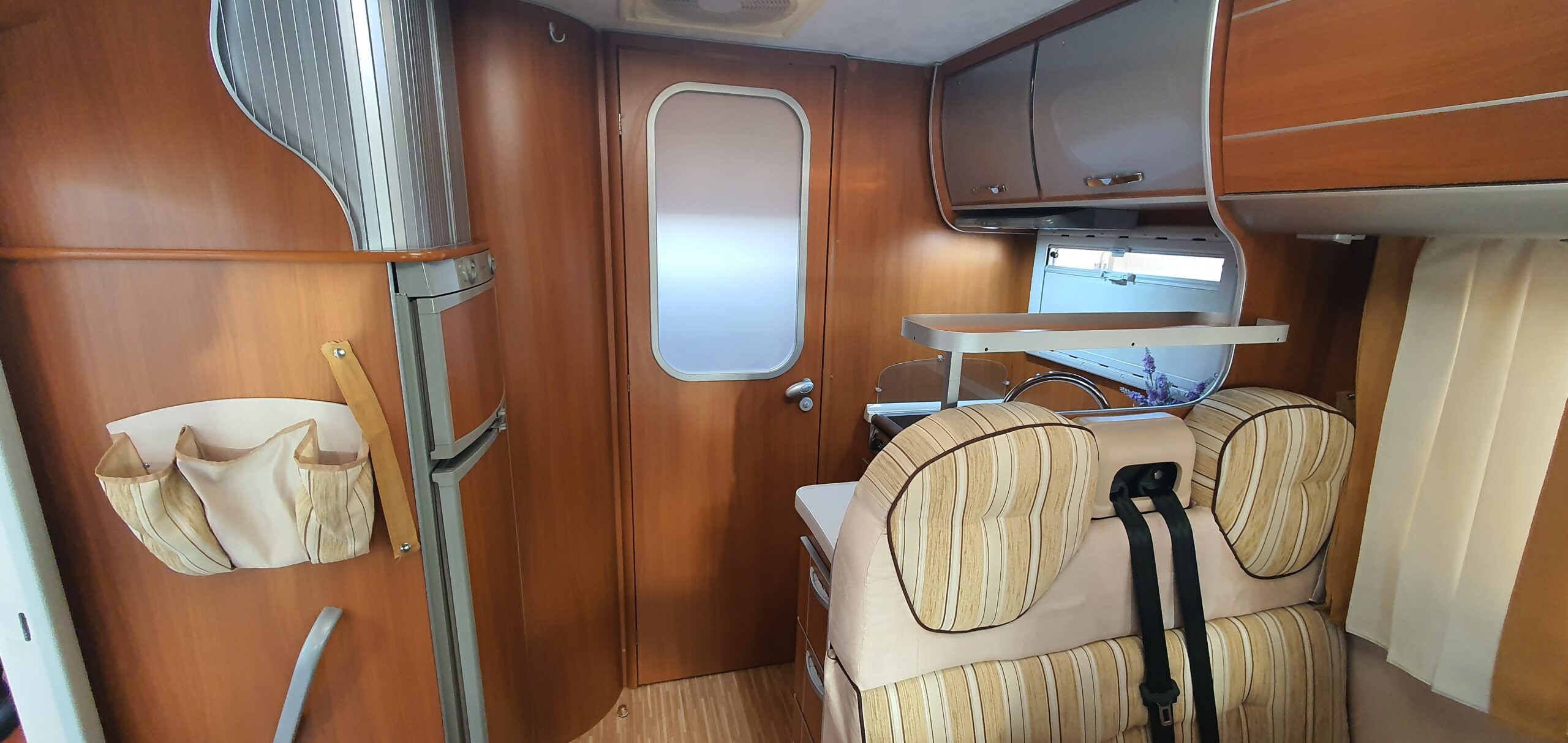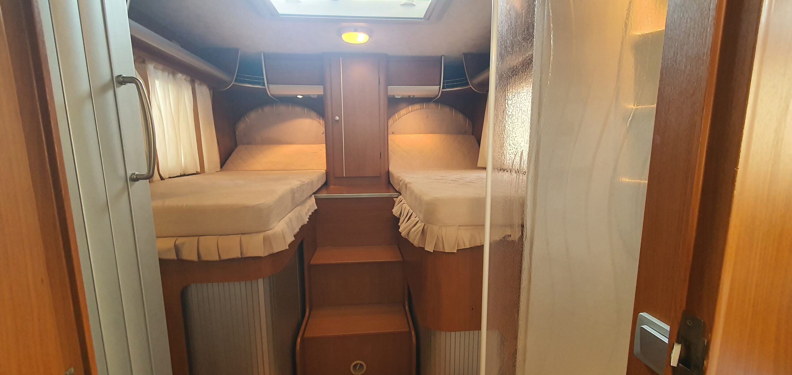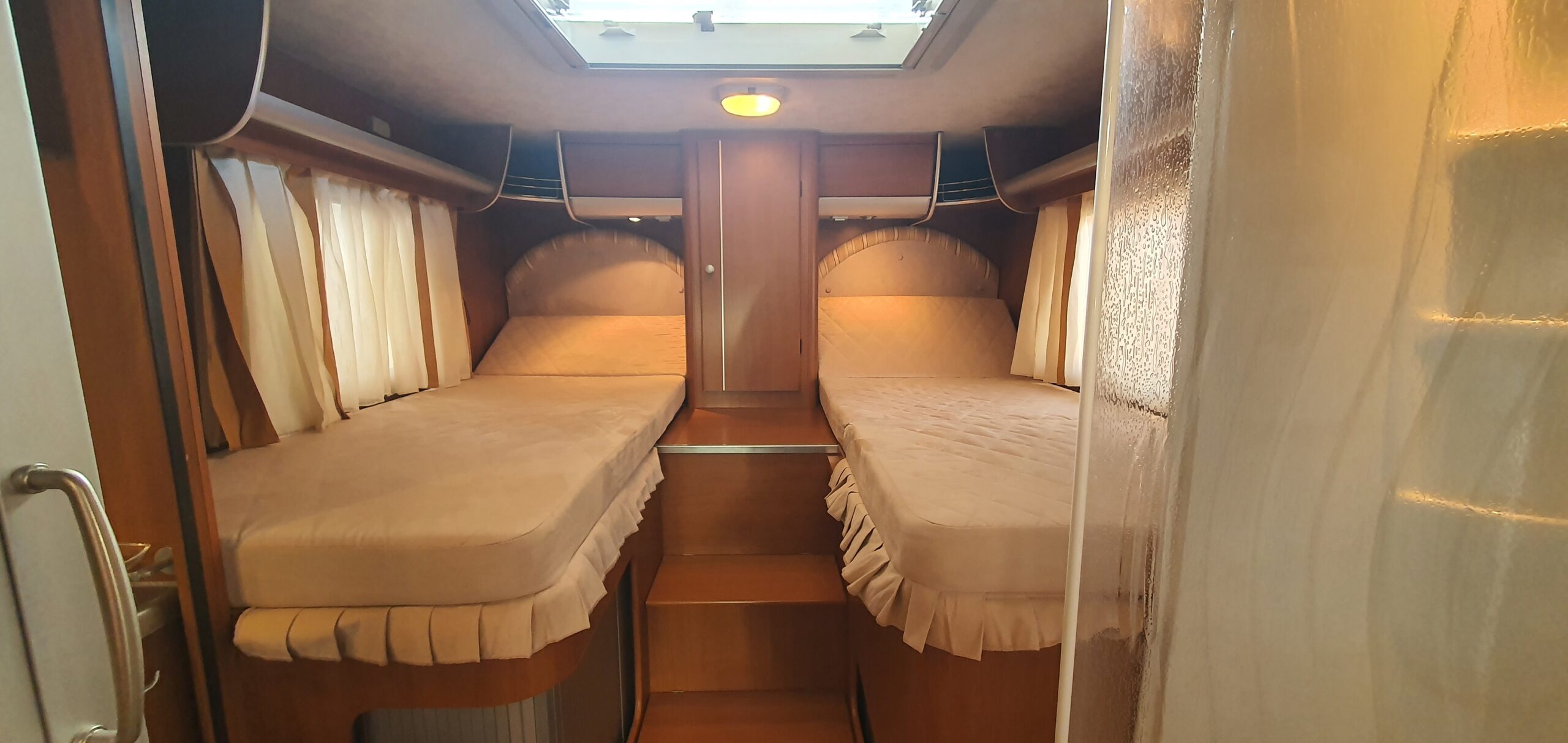 LETTI GEMELLI POSTERIORI, GRANDE GARAGE, BAGNO E BOX DOCCIA SEPARATI, PORTA CHE DIVIDE ZONA GIORNO DA ZONA NOTTE, FRIGORIFERO AUTOMATICO CON CONGELATORE SEPARATO, ZONA SOGGIORNO AMPIA CON SEDILI GUIDA GIREVOLI.