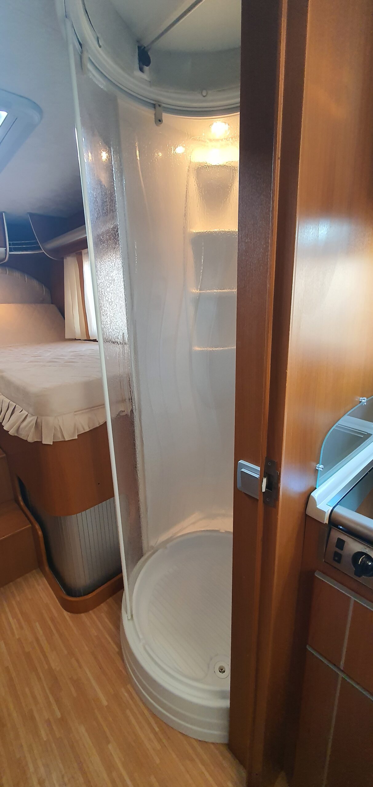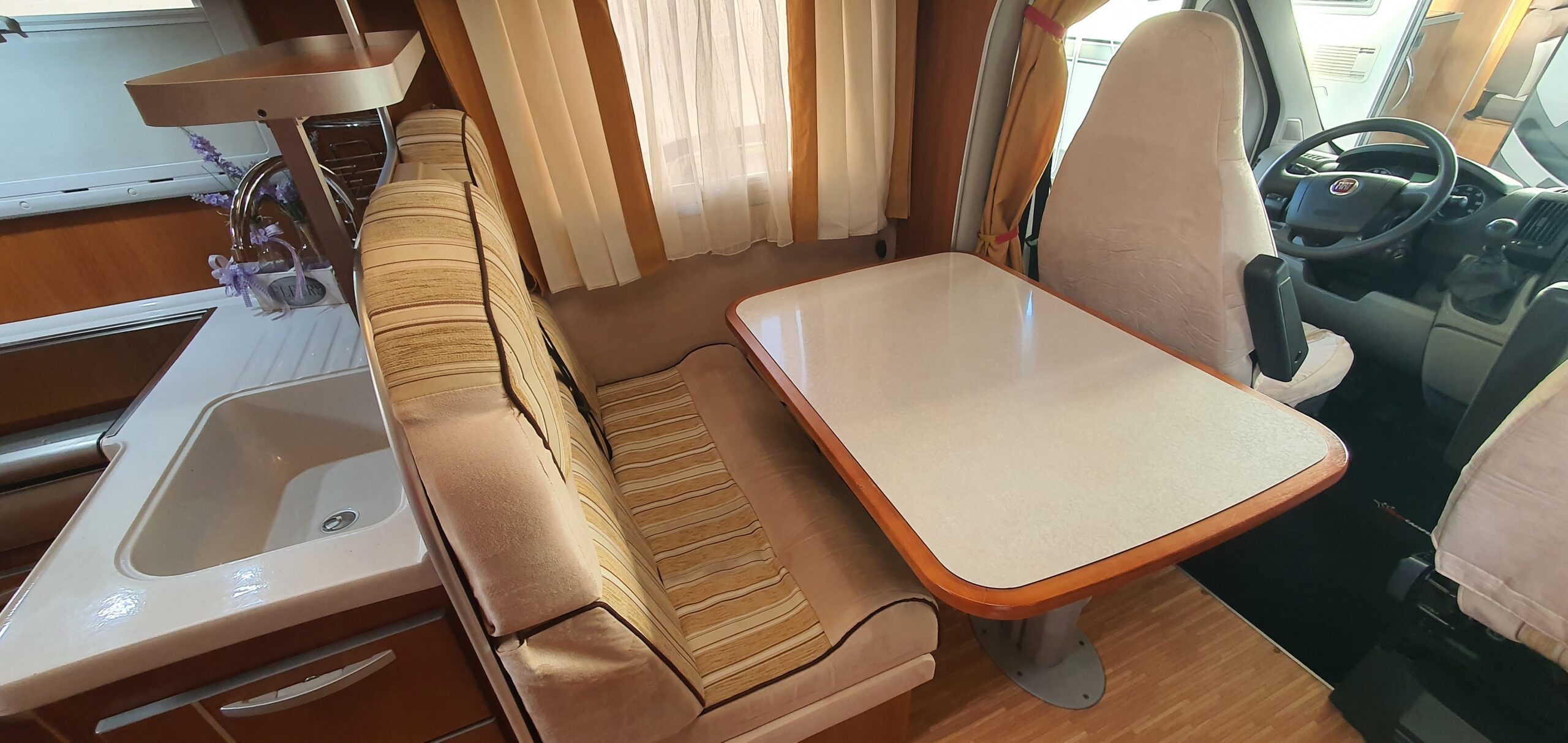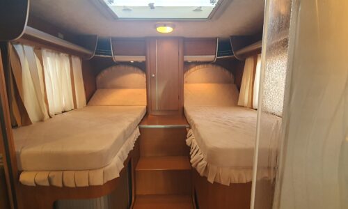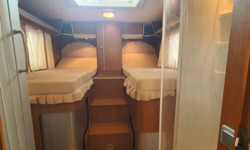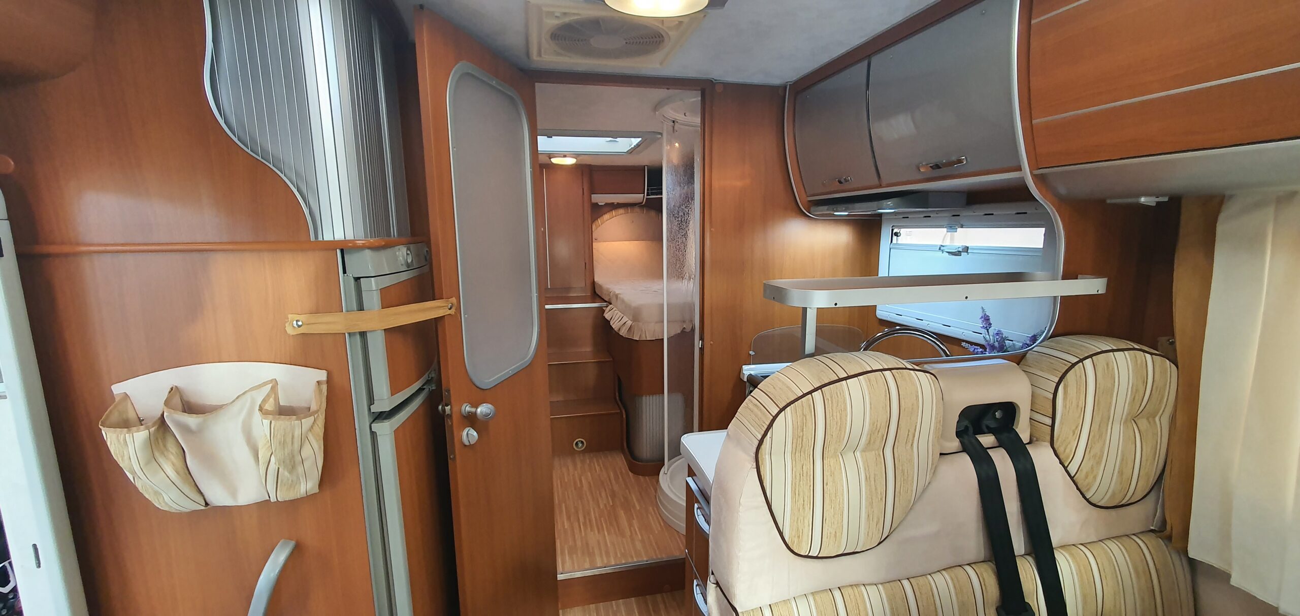 LETTI GEMELLI POSTERIORI, GRANDE GARAGE, BAGNO E BOX DOCCIA SEPARATI, PORTA CHE DIVIDE ZONA GIORNO DA ZONA NOTTE, FRIGORIFERO AUTOMATICO CON CONGELATORE SEPARATO, ZONA SOGGIORNO AMPIA CON SEDILI GUIDA GIREVOLI.
